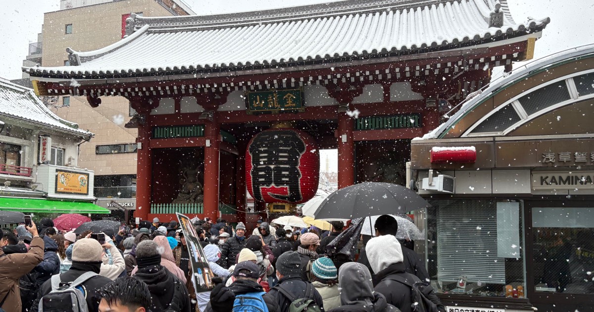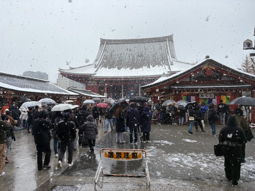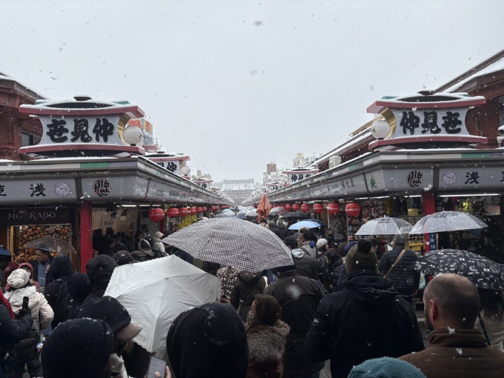 外国から来ている人はスケジュールを以前から組んでいる人がほとんどでしょうから、雨が降ろうが雪が降ろうが予定していた観光地に行くことになりますので雪の浅草にたくさんいることは全く不自然ではないのですが、それなりに近くから来たであろう日本人の人もたくさんいました。
